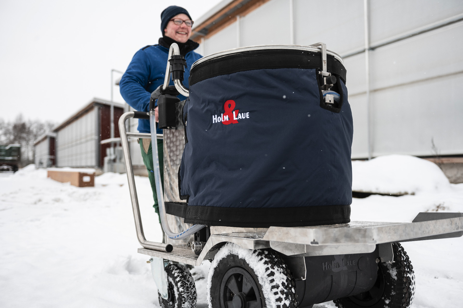 子牛が水をよく飲めるように最適な温度に調整してあることが必要です。このため冬は温水(約 20~30 °C)をやるのがよいです。この温水を MilkTaxi でバケツに満たしたり、子牛グループに電熱フロート飲料水を確保するとよいです。