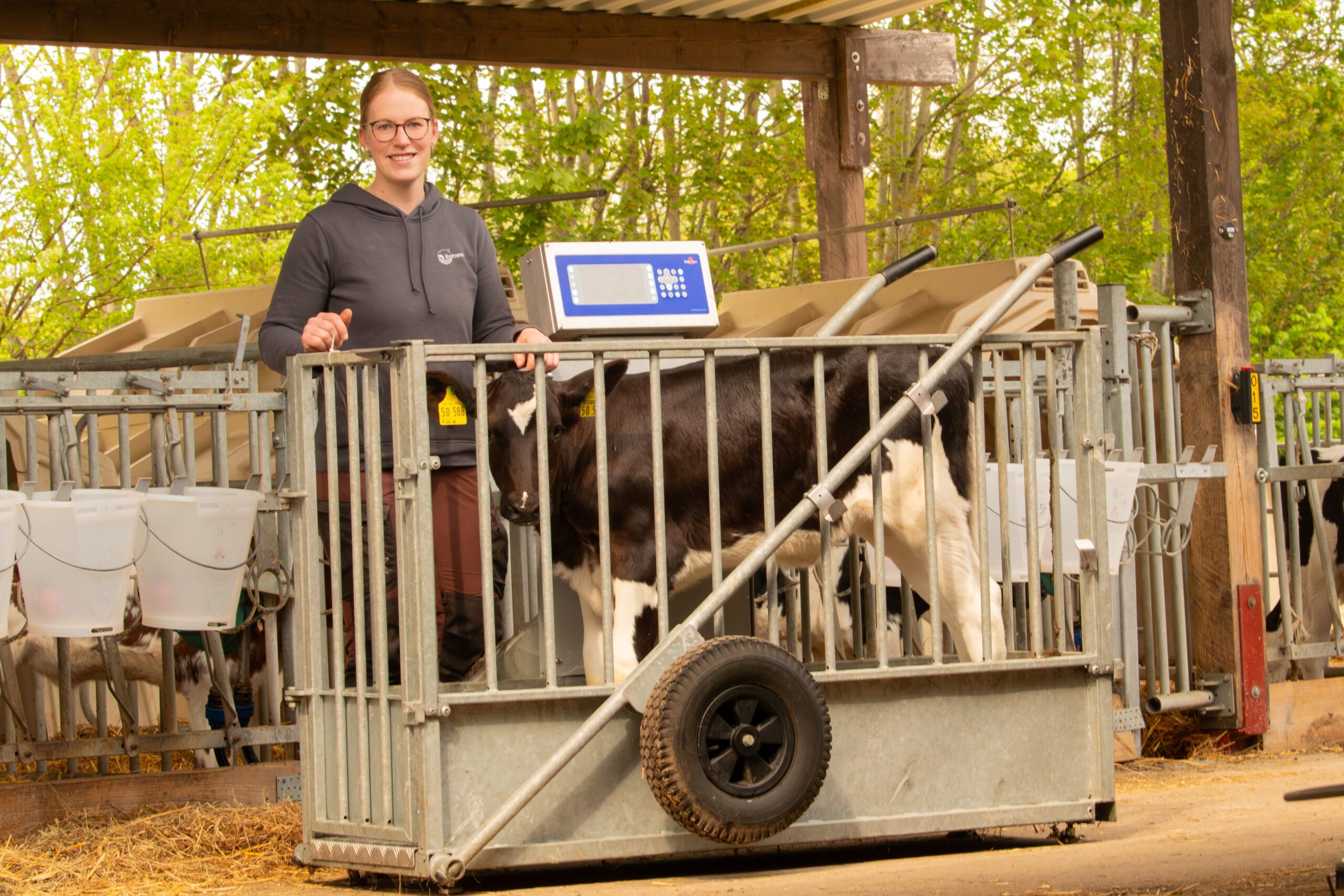 SOP:en beskriver hur man placerar kalven korrekt på vågen, hur man tilldelar vikten till motsvarande levande öronmärke och hur man registrerar detaljer om kalven. Eftersom den individuella dagliga viktökningen beräknas på grundval av denna födelsevikt vid senare vägningar är det särskilt viktigt att den första vägningen registreras korrekt.