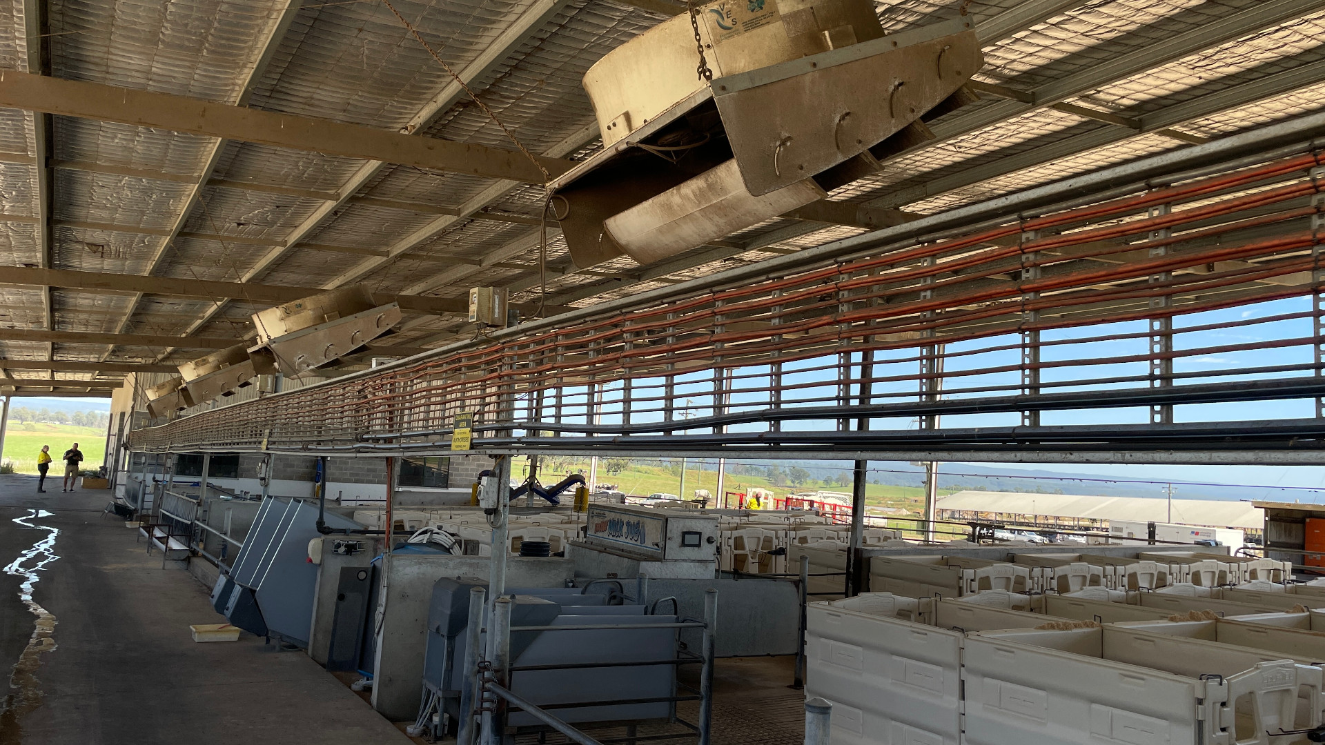 Les deux bâtiments sont équipés de grands ventilateurs pour rafraîchir les veaux en été.