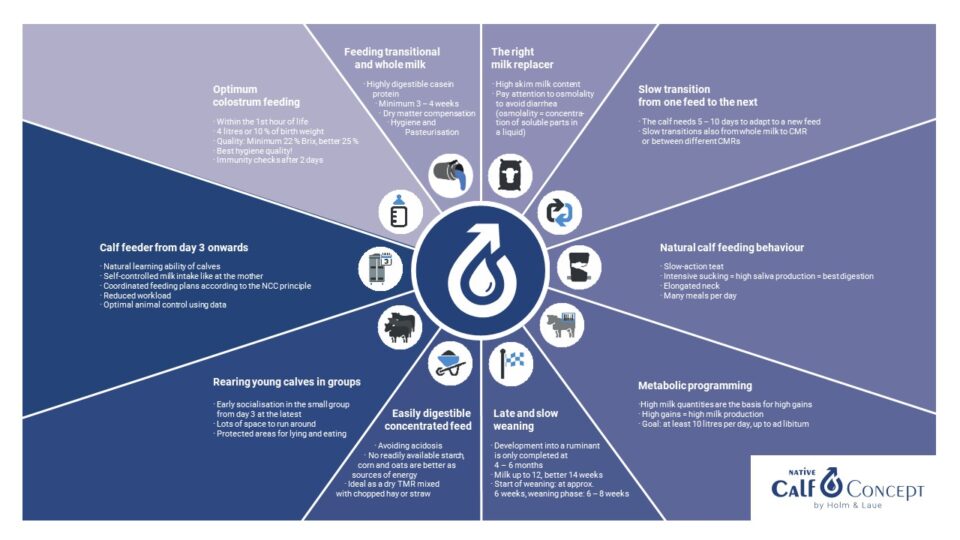 Wij beantwoorden deze vragen met het Holm & Laue NativeCalfConcept. Het goede nieuws: een natuurlijke kalveropfok is lonend op alle niveaus. Met een paar nuttige aanpassingen en enkele investeringen tilt u uw kalverhouderij naar een nieuw niveau!